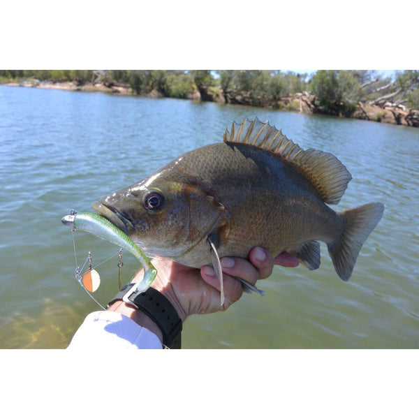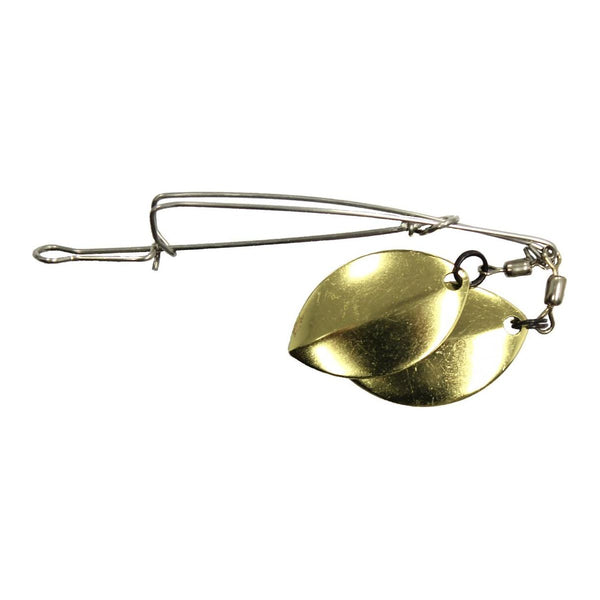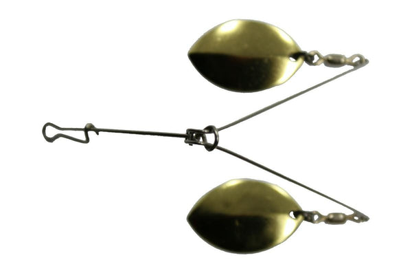 TRIBE Twin Jig Spinners feature a folding stainless steel wire frame for easy storage, simply sliding open ready to be attached to your jighead, blade, vibe or other lure. Twin Olympic gold coloured brass blades send out plenty of vibration, noise and flash, designed to draw fish to the lure and trigger aggressive strikes, while the wire frame increases the snag resistance of your soft plastic presentation. Double up!