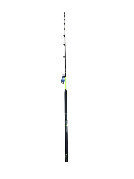 The Latest game rod from Okuma designed specifically for Land Based Shark Fishing from the beach or rocks.  The rod is 8 foot long, 2 piece design for travel, with a connection in the butt/foregrip so as not to compromise any strength of the blank. With a 37kg to 60kg line class, this rod can be used for massive sharks like Bronze Whalers to Bull Sharks.  The guide train is full zirconium hard guides designed for running braid line that will allow for minimal maintenance.  The reel seat is oversized to accommodate an 80W reel if needed and has locking rings to stop the reel seat from unwinding mid fight.  This has to be the best Land based game rod on the market for its price.  If sharks off the surf is your thing, this is your rod!