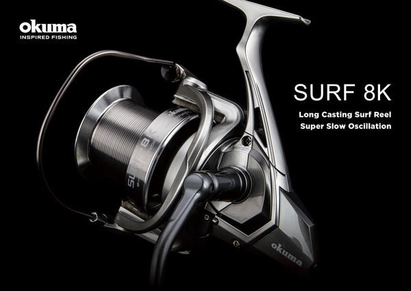 The Okuma Surf 8K spinning reel is built from the ground up for surf fishing, including large line capacity and slow oscillation system for improved line lay, long cast spool and fast drag system with the stopping power of 18kg max drag.