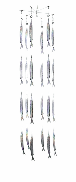 1x 12" 6 arm bar with 7x holographic single strips with sardine image prints.