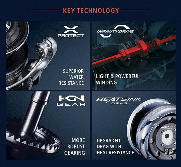 Designed to challenge the impossible, the new Twin Power SW is stronger and more durable than ever. The inclusion of Infinity Drive reduces handle rotation torque by a maximum of 30% when compared to the previous series. Heat Sink Drag features in the 10000 and 14000 sizes to reduce the amount of heat transferred to the drag washers and line during the fight. The X-Protect seal and labyrinth structure repels water intrusion, with the line roller and clutch assembly, the mechanism is ten times more durable according to interal Shimano testing. The new striking silver and blue cosmetics have been paired up with a polished metal handle and power knob to finish the reel off superbly. Engineered and made in Japan to the highest standard for the world’s hardest fighting saltwater species.