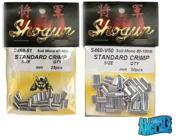 Shogun crimps are the best in the business. -Thick walls on the crimp make these some of the strongest and highest quality crimps on the market. -Use these aluminium crimps for rigging heavy nylon leader. - If you want top quality rigging for fish of a lifetime, only use shogun crimps. -sizes range from 0.8mm to 2.3mm to suit 80lb to 400lb nylon leader.