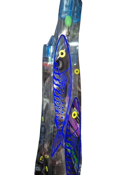 The original Strip Teaser Cone with triple strips is rigged with 150lb leader and swivel connection with a heavy duty snap swivel under the cone to attach a lure or live bait rig.