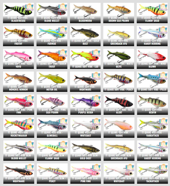 Inside is a stainless steel frame that delivers far more strength and stability than wire frames, with a holographic coated weight on all transparent options. On the outside, choose from a huge selection of unique and vibrant colour schemes, many having UV-reactive finishes. Quake soft vibes come ready to rock with premium 4X strong Japanese trebles.
