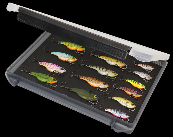Ideal for keeping vibes, blades, hard bodies and jigheads safe, dry and secure. Made with UV stabilised impact-resistant material, with secure locking tabs to prevent accidental spills. High density foam inserts have deep slits to hold hooks securely, stopping lures from rattling loose and tangling. Shallow trays have locking hinges on both sides of the lid, allowing you to remove the lid completely or open it from either side.