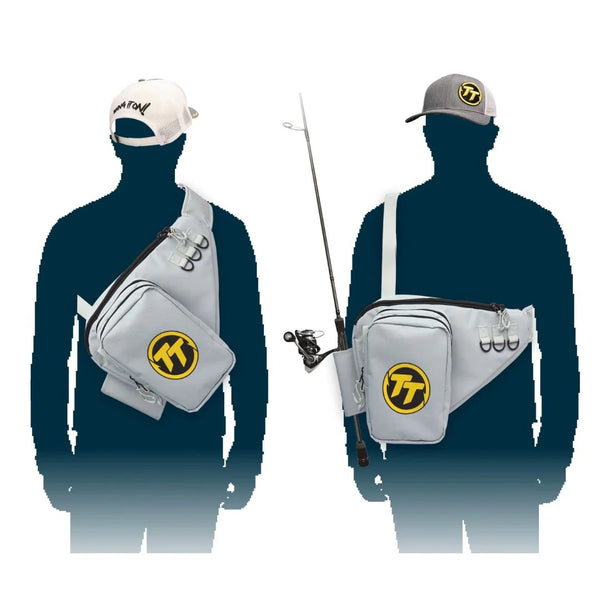 For the agile land-based angler, this durable tackle sling is loaded with practical features. One large and 2 small pockets easily fit a selection of tackle trays and accessories. The small pockets perfectly fit a TT small tackle tray, while the TT medium tackle tray fits in the large pocket. Comfortably slings over the shoulder, then quickly spins around for quick access, with a handy rod holder to slot a rod into for free hands while re-rigging on the go. Also has an external pliers pouch, plus 3 carabiner points to attach accessories. One size fits most with an adjustable strap.
